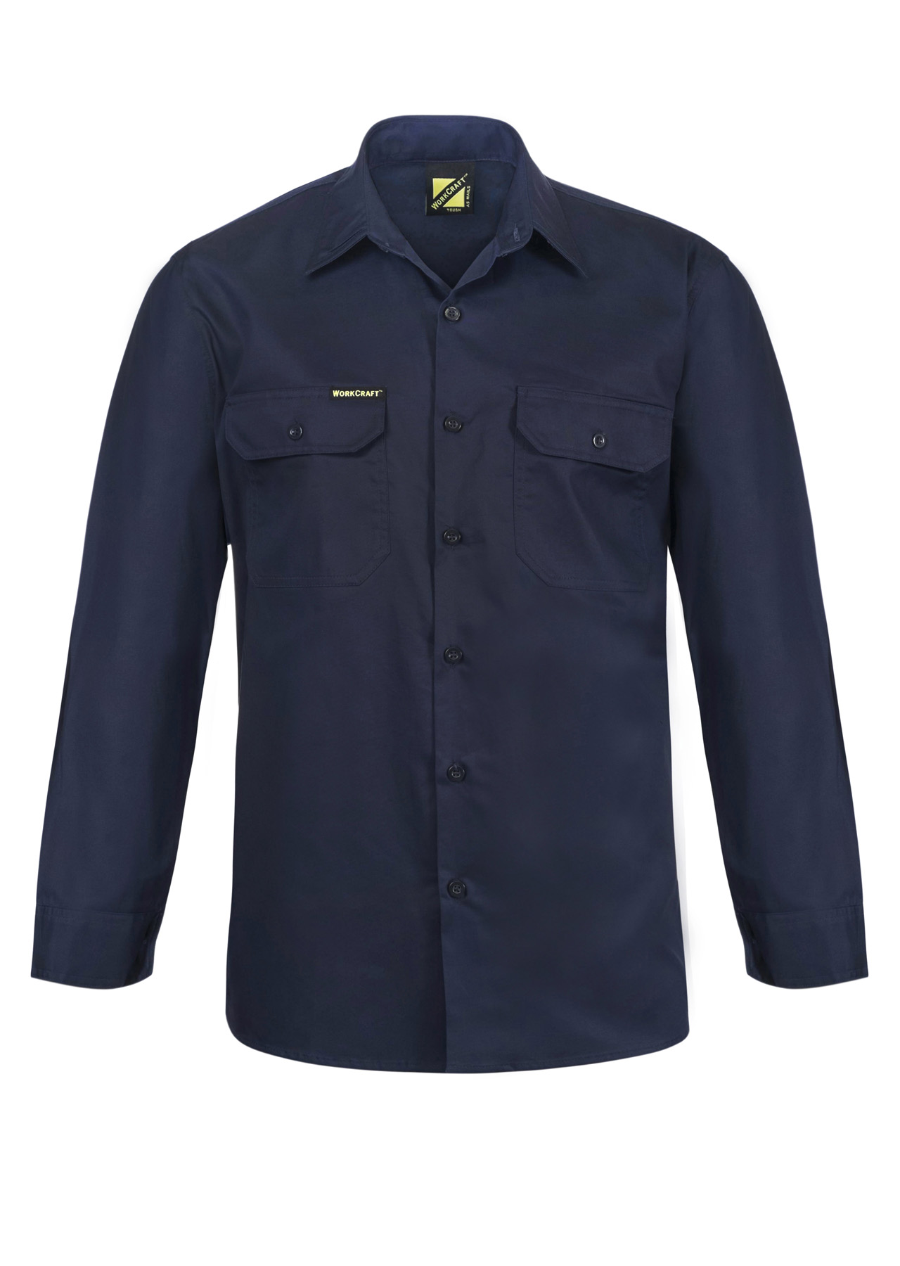 Lightweight Long Sleeve Cotton Drill Shirt – Navy